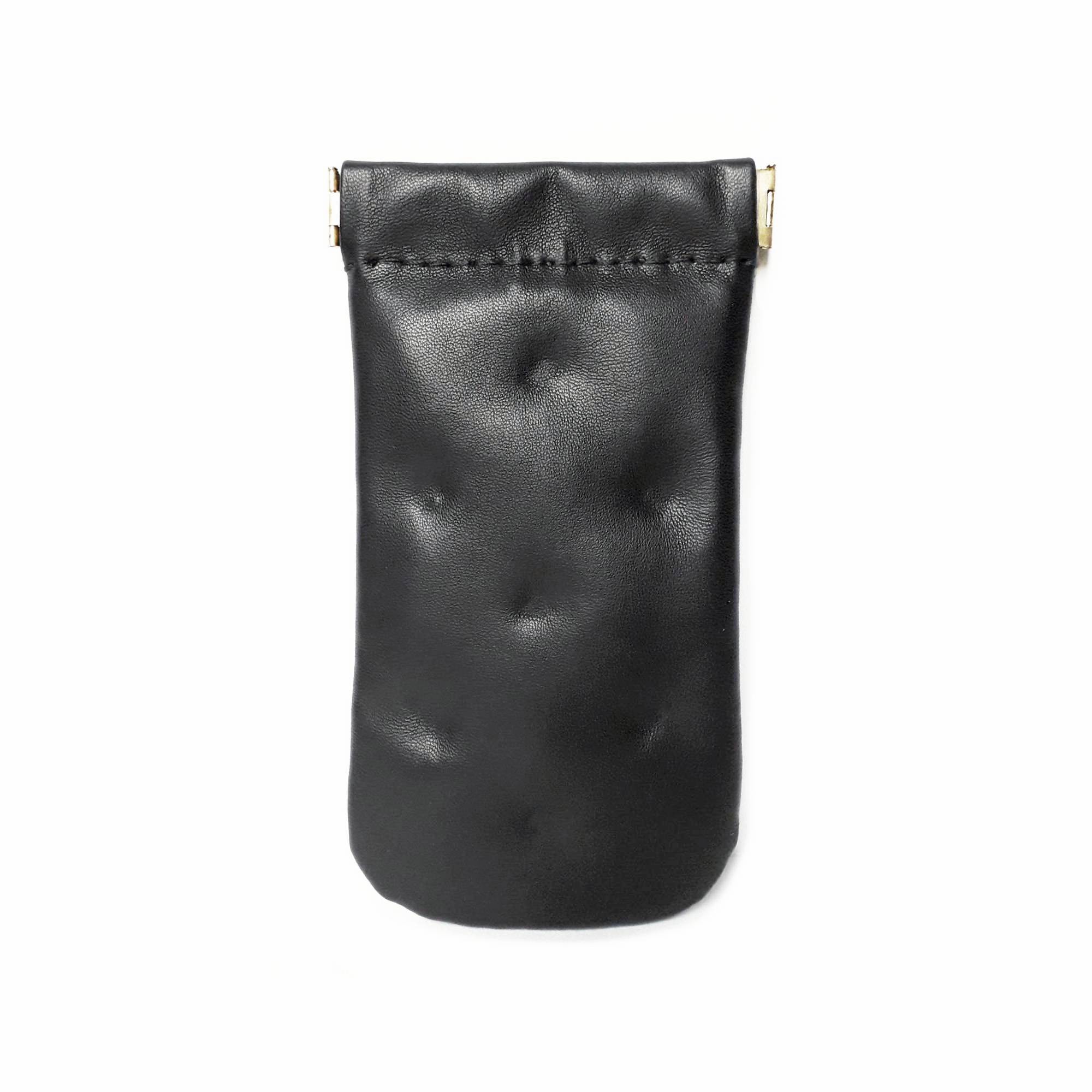 Cet étui est confectionné dans un cuir souple fin au toucher très doux, est entièrement doublé et rembourré d'une fine ouate, à l'effet matelassage "pois".